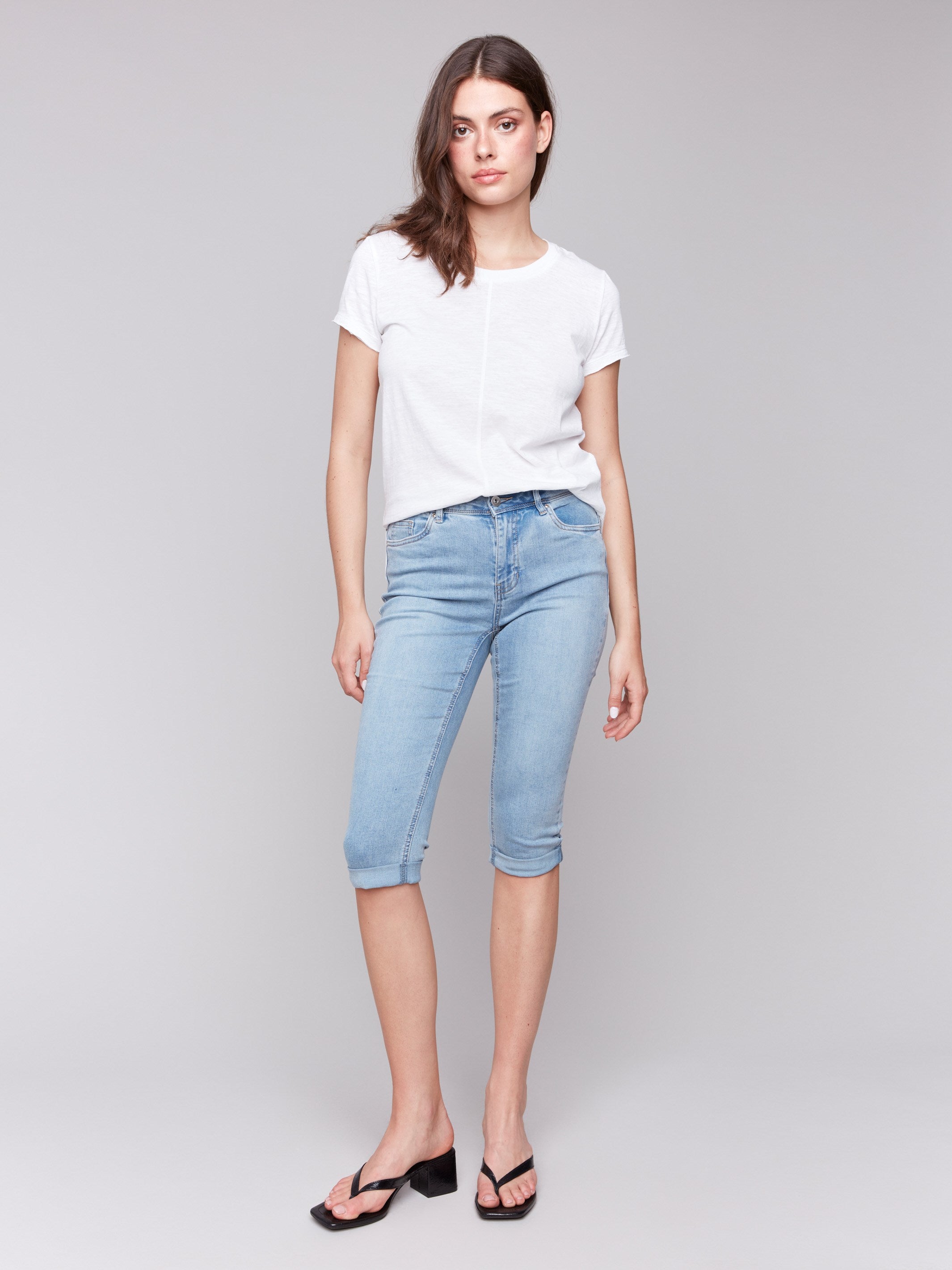 Stretch Denim Pedal Pushers - Light Blue