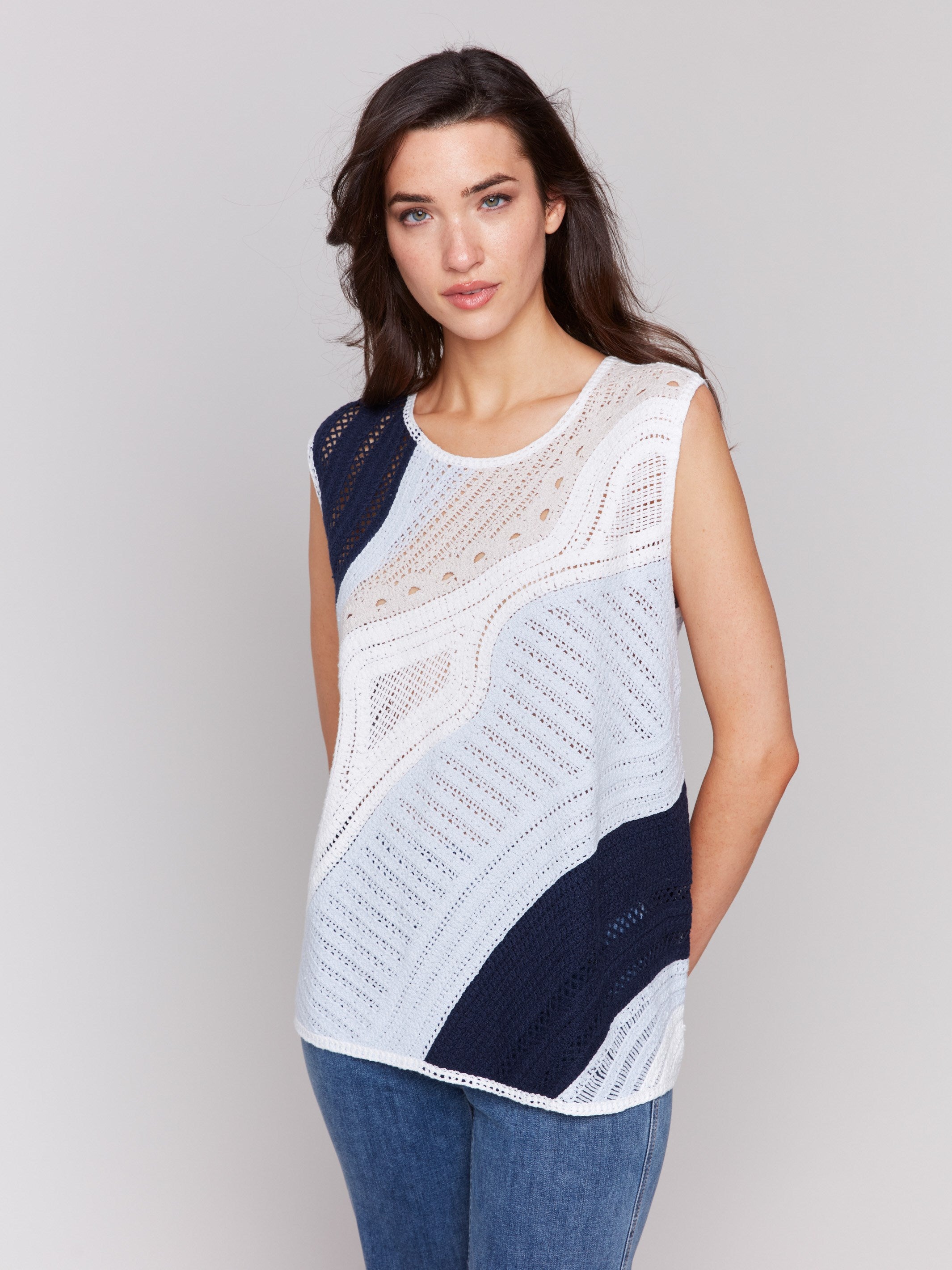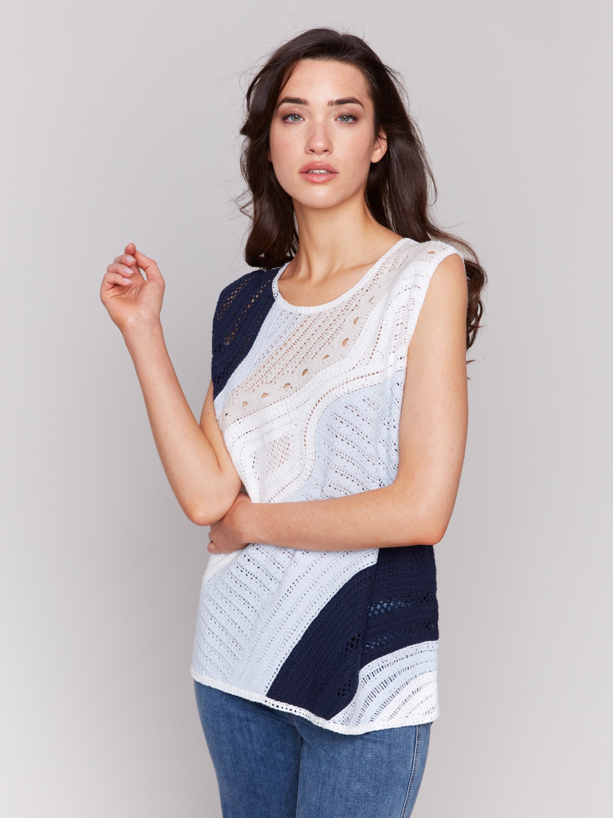 Sleeveless Colorblock Crochet Top - Denim