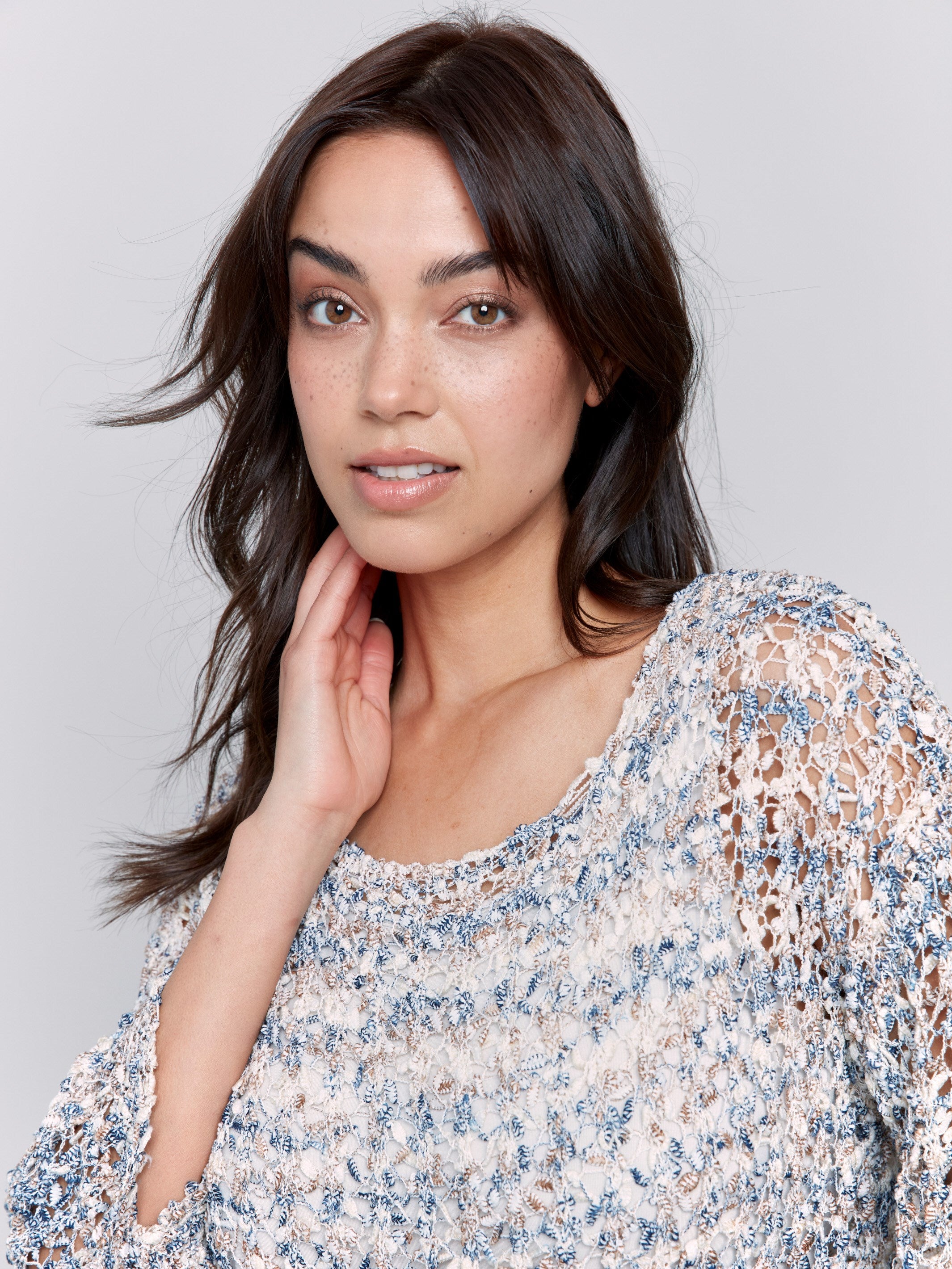 Cotton Blend Crochet Top - Denim