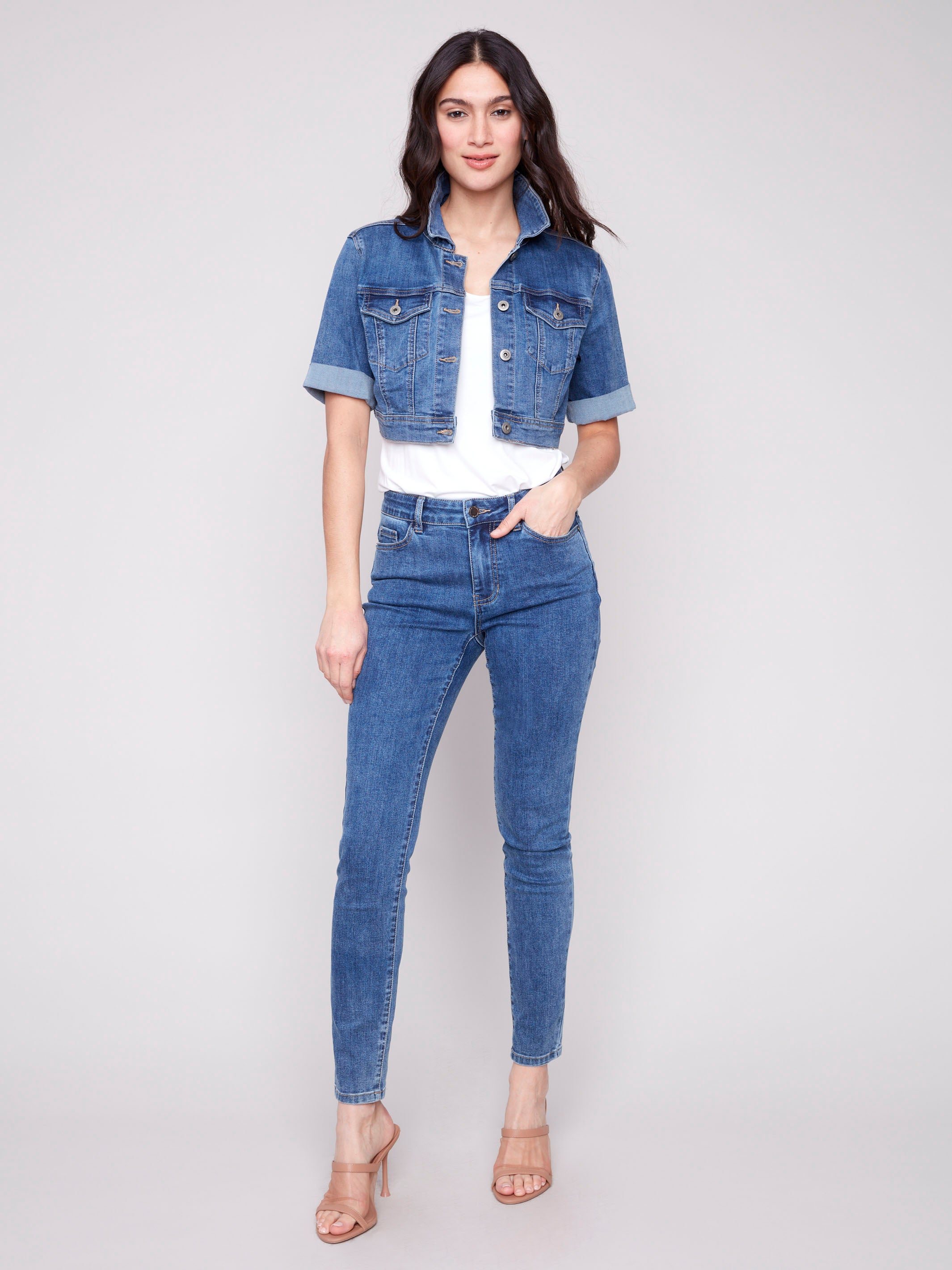 Cropped Denim Jacket - Medium Blue