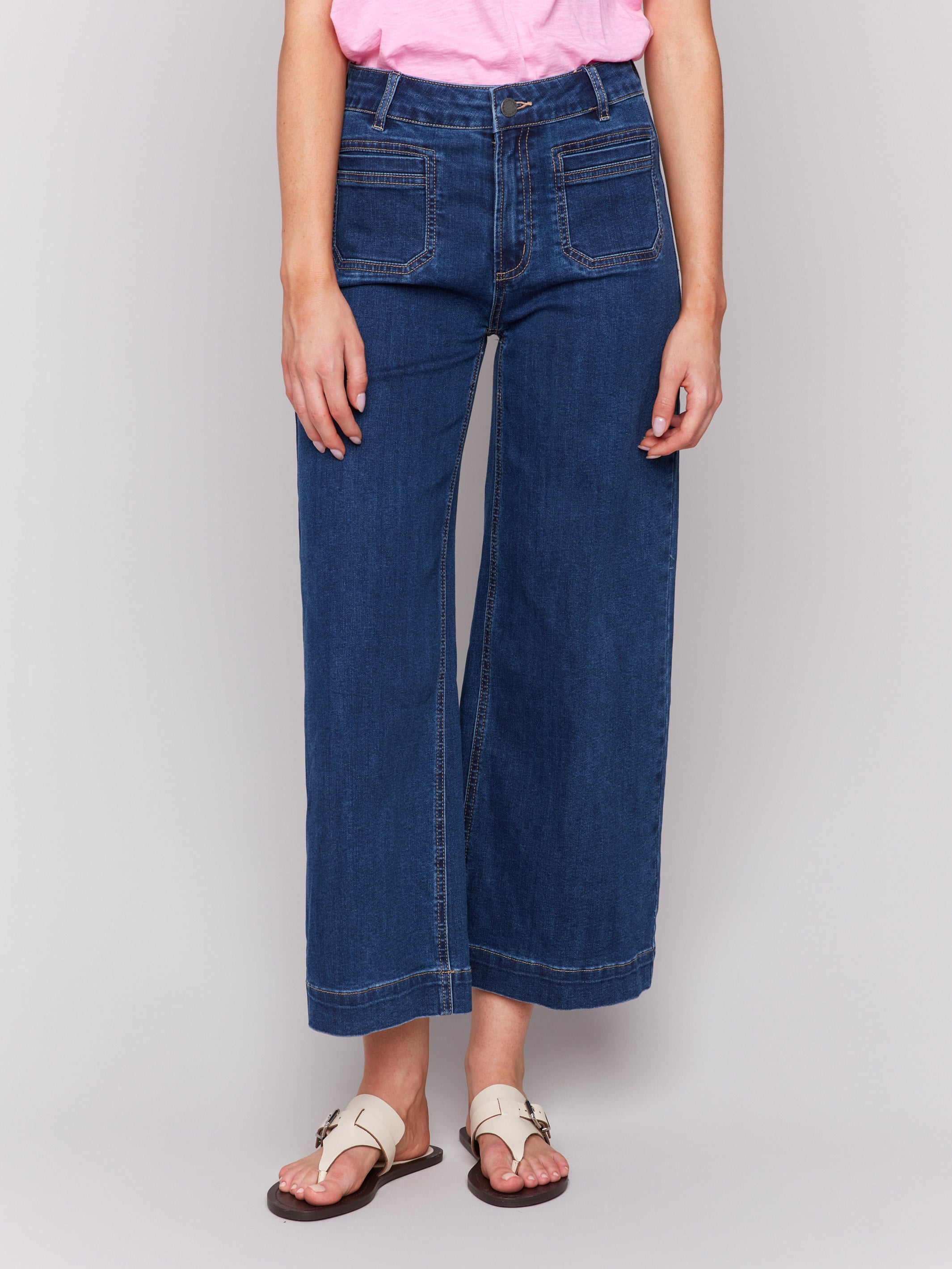 Patch Pocket Flare Jeans - Indigo