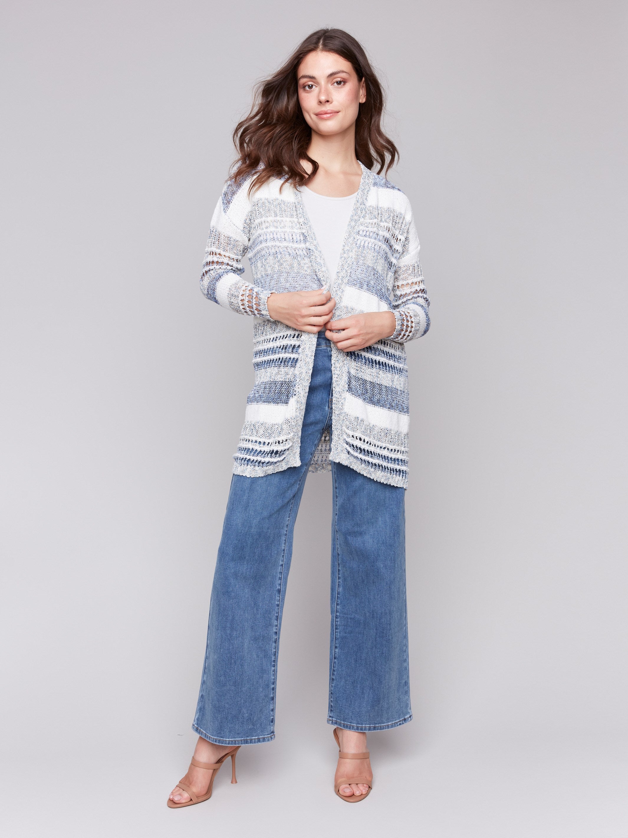 Knee-Length Striped Cardigan - Denim