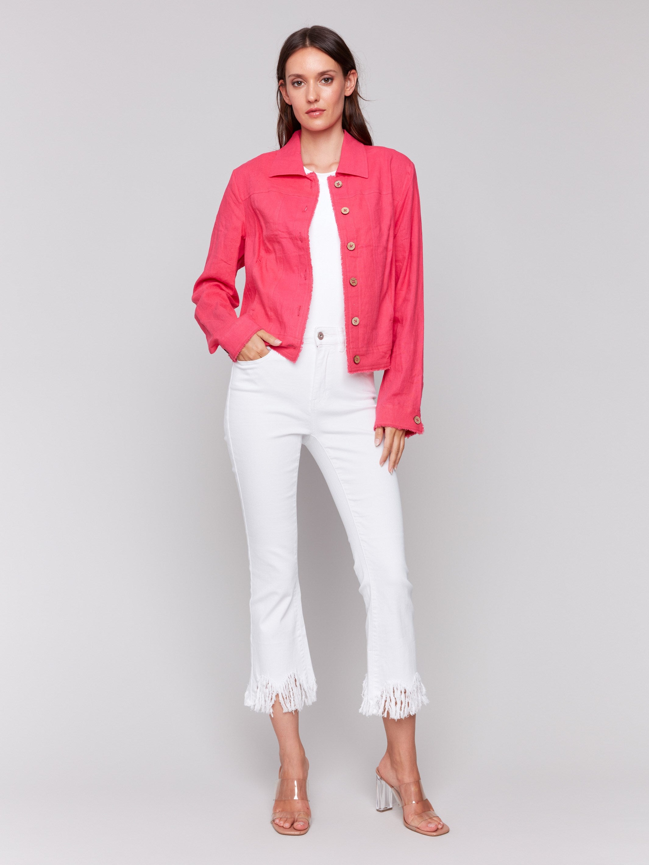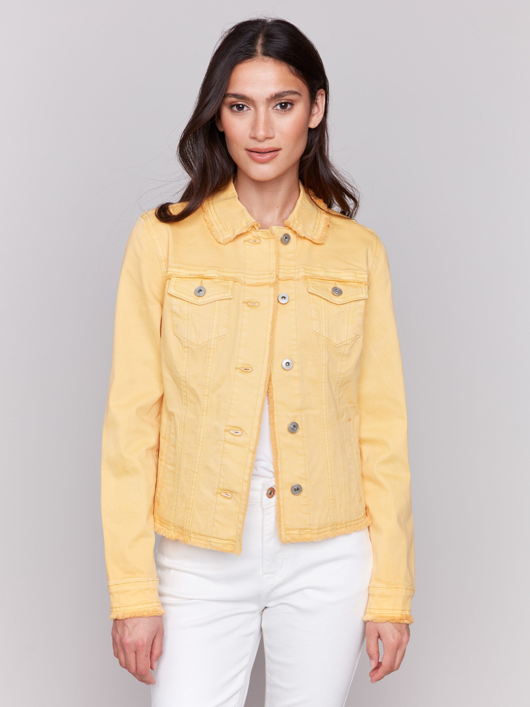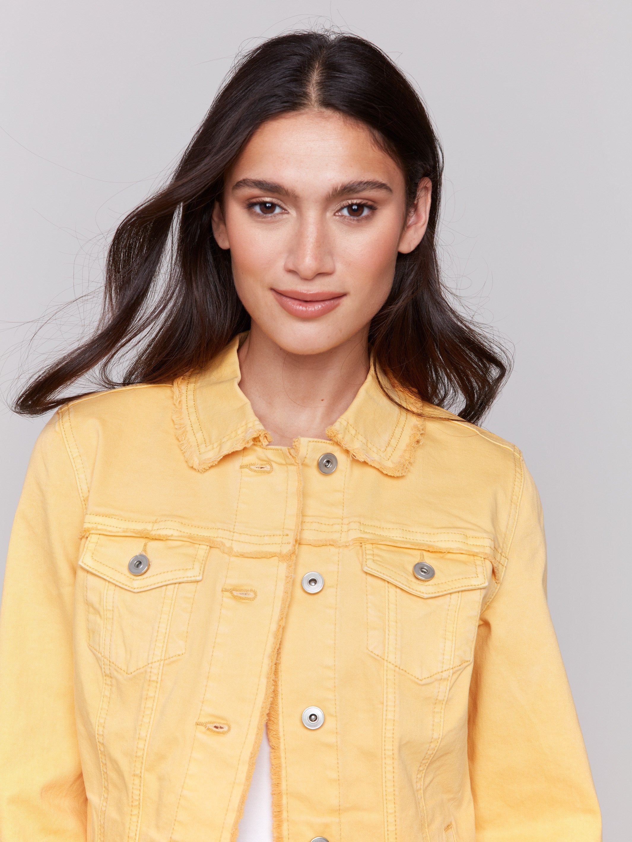 Twill Jean Jacket With Frayed Edges - Lemonade