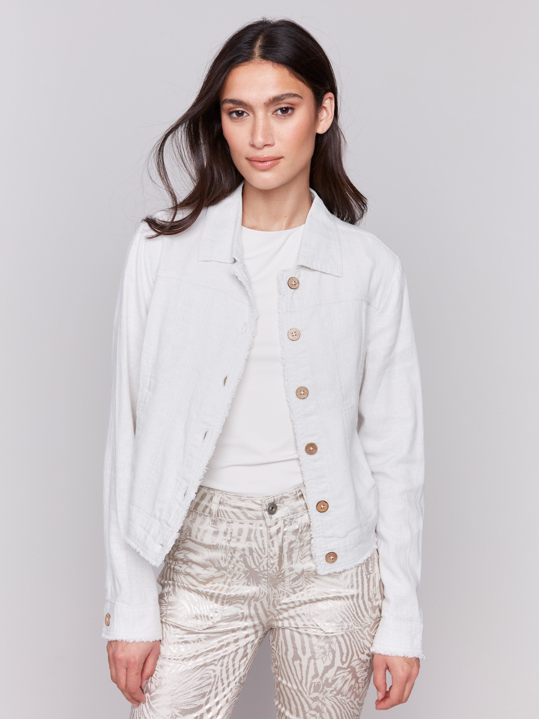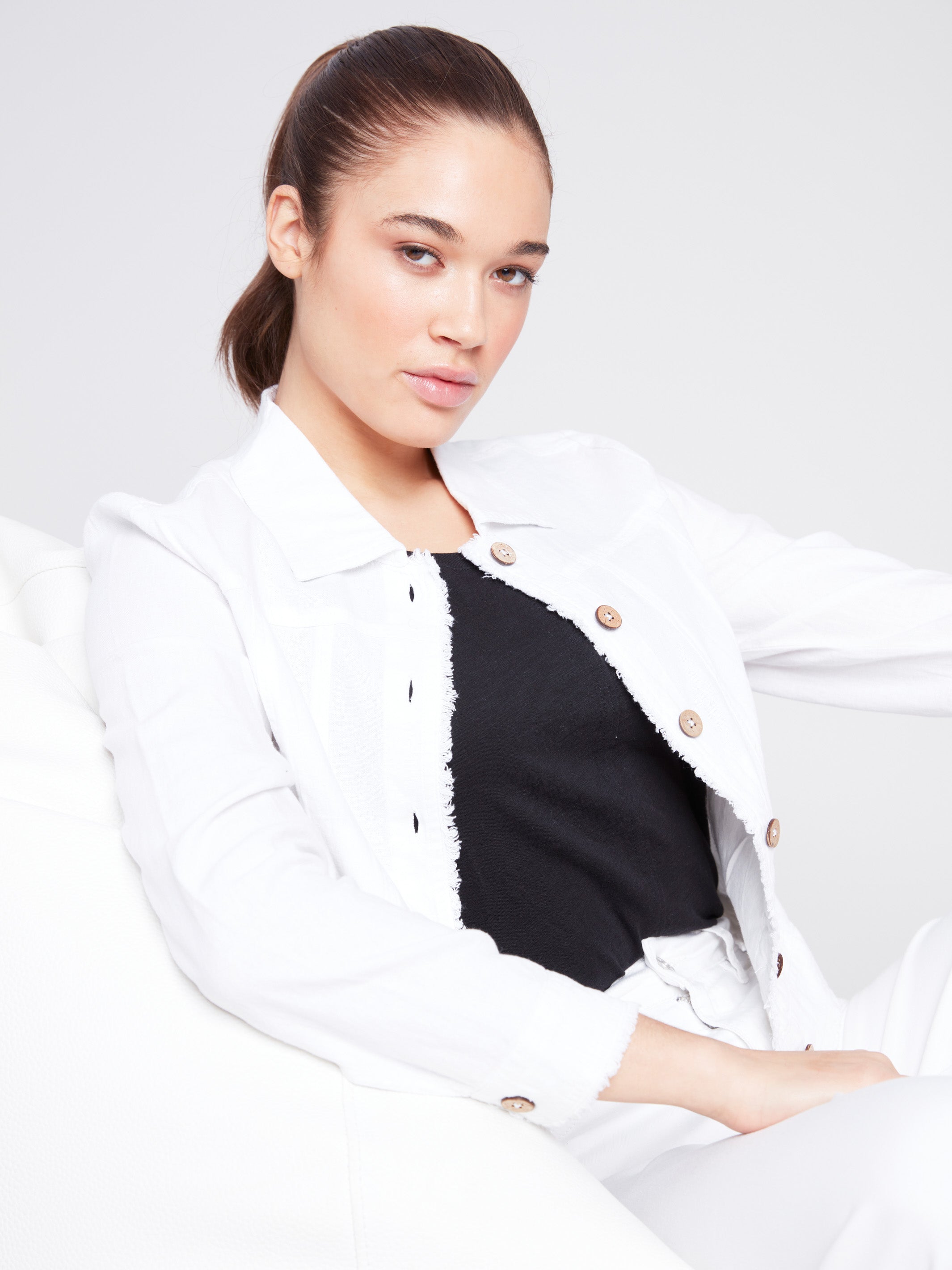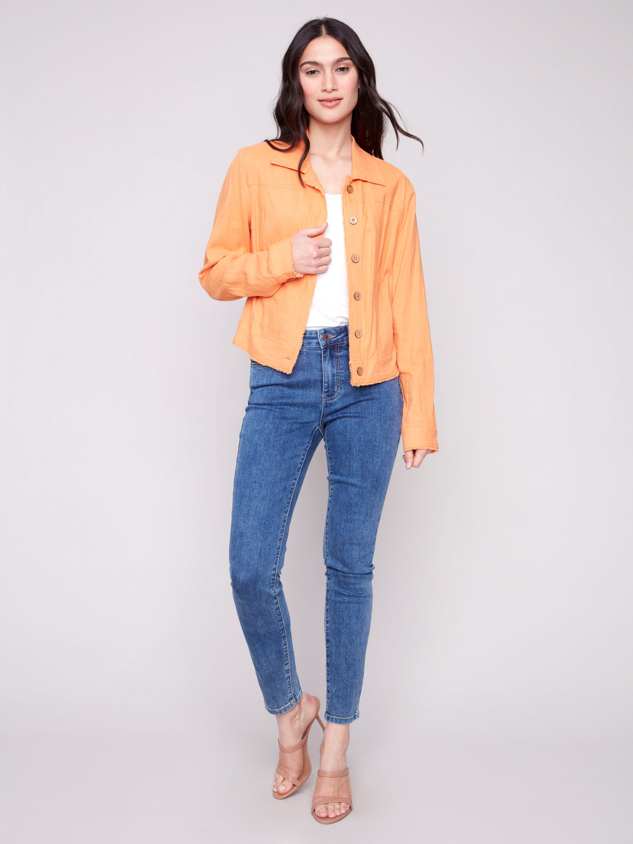 Twill Jean Jacket With Frayed Edges - Lemonade