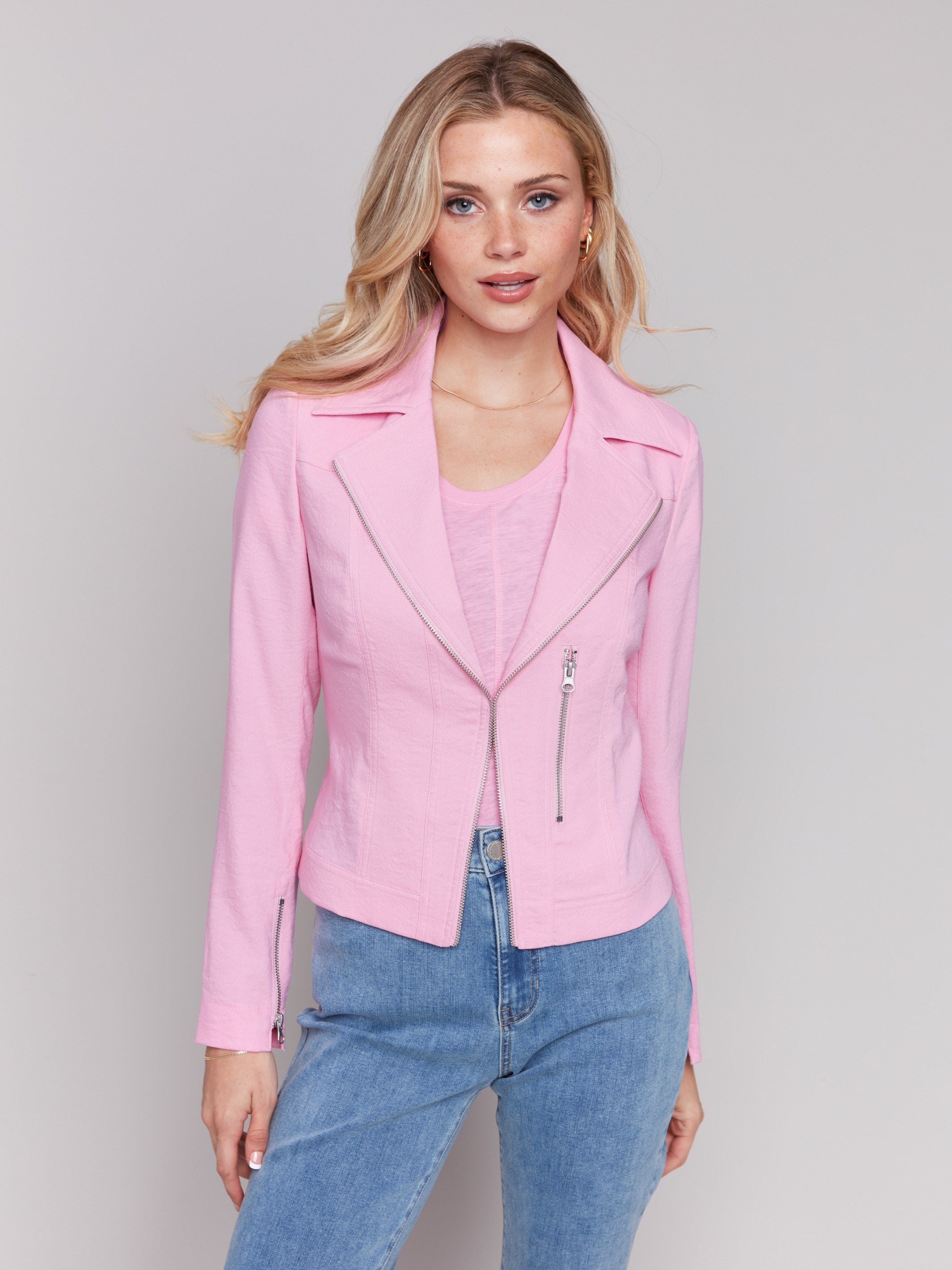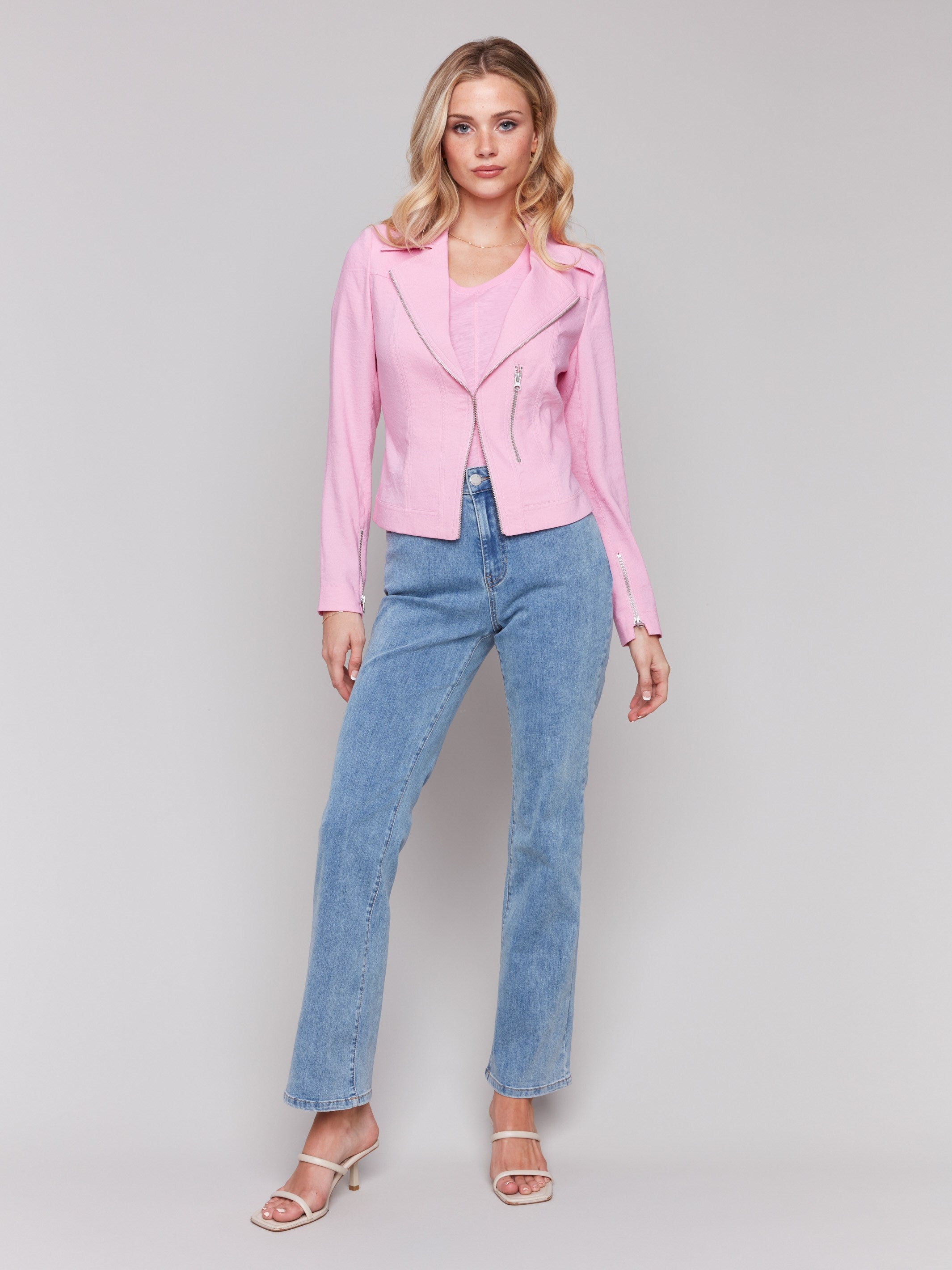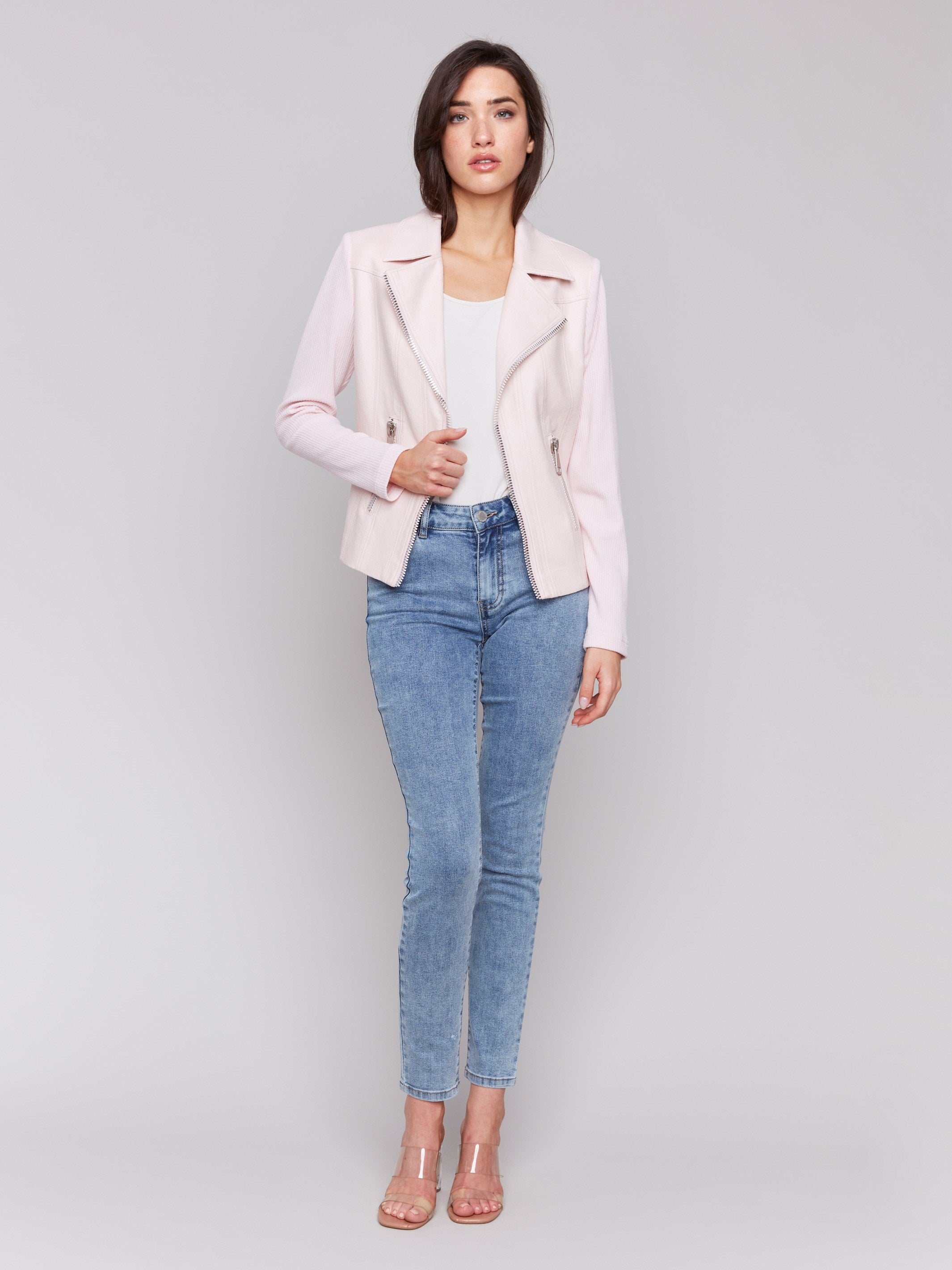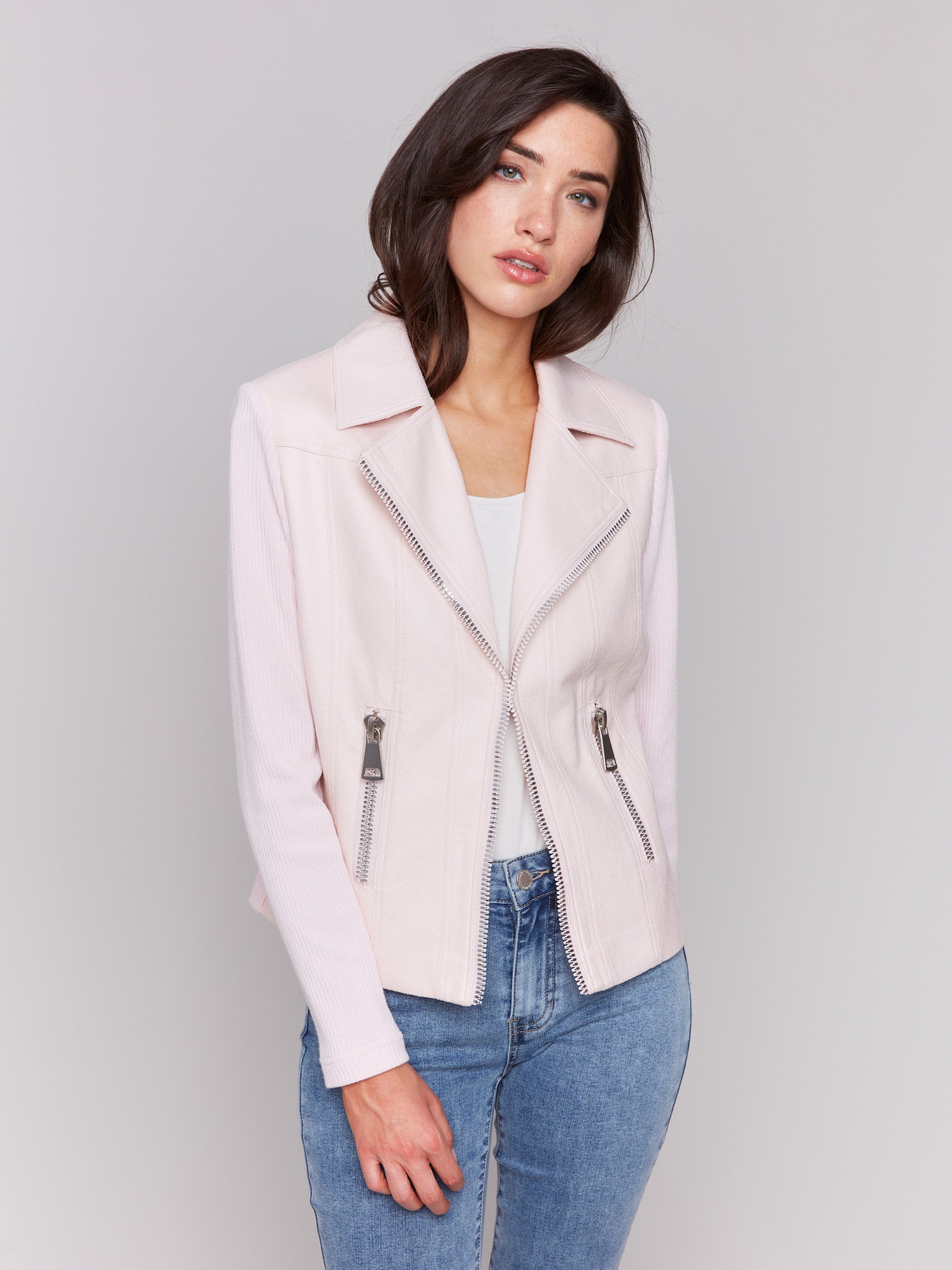 Vintage Faux Leather and Rib Knit Jacket - Petal