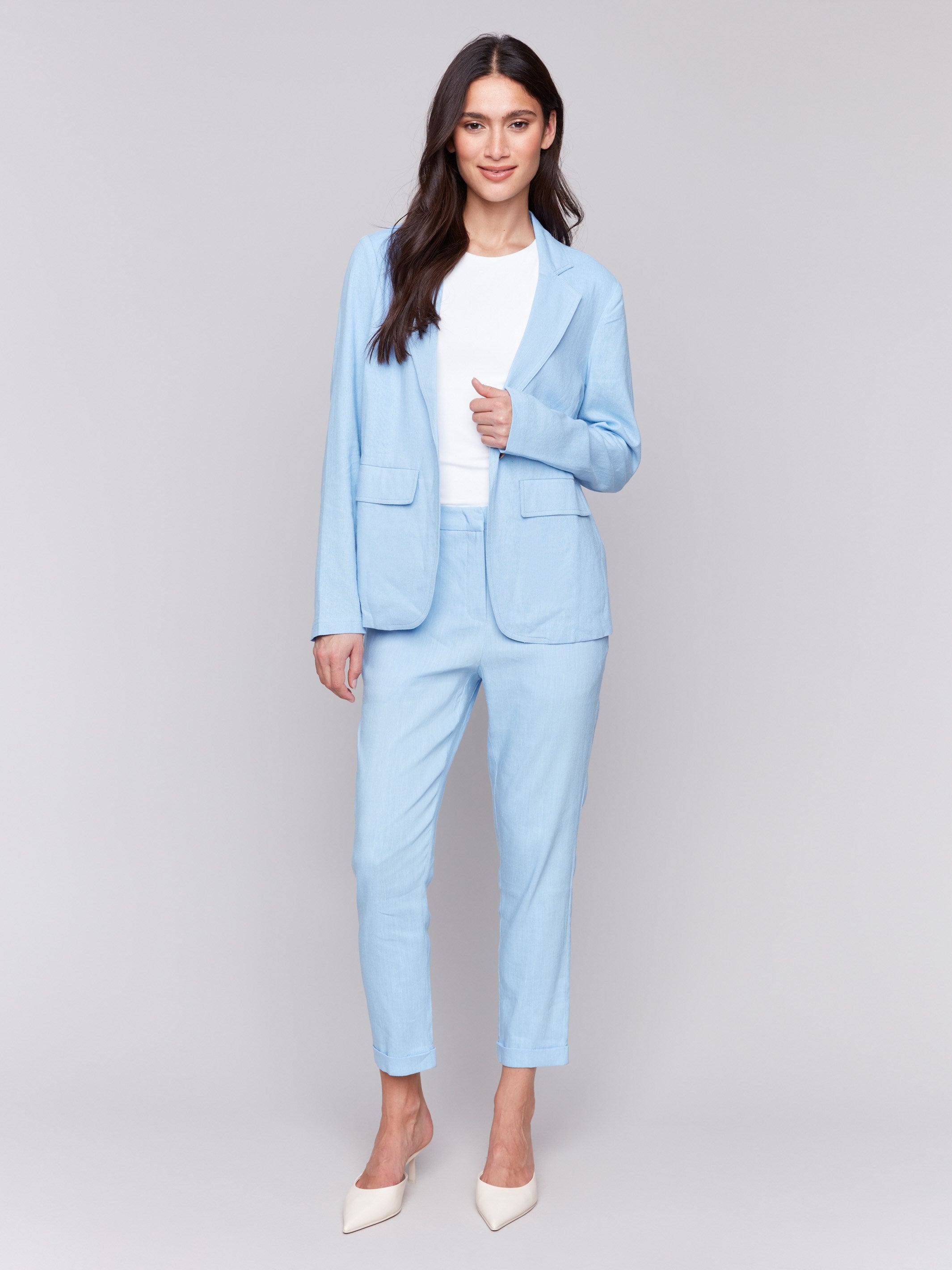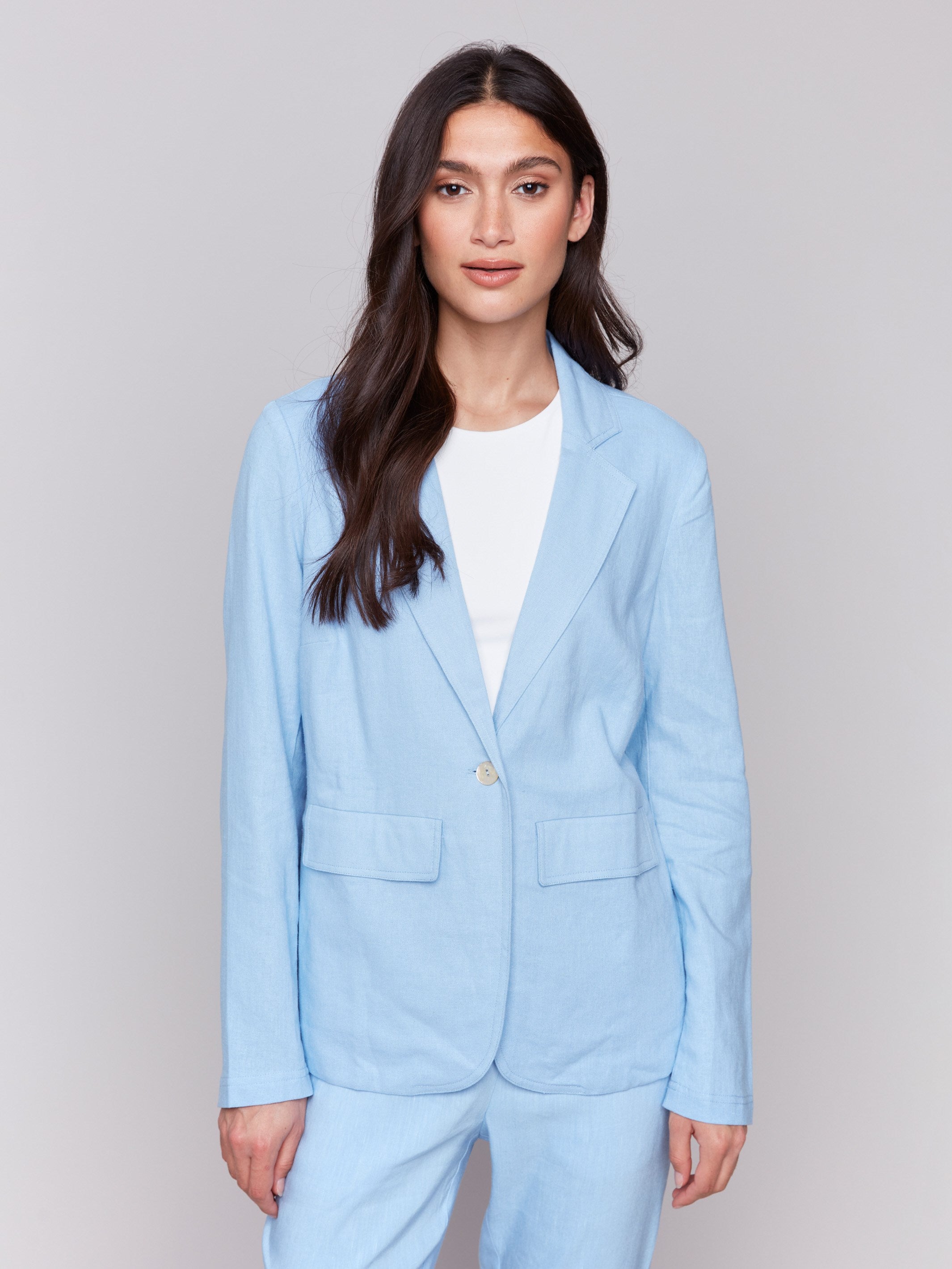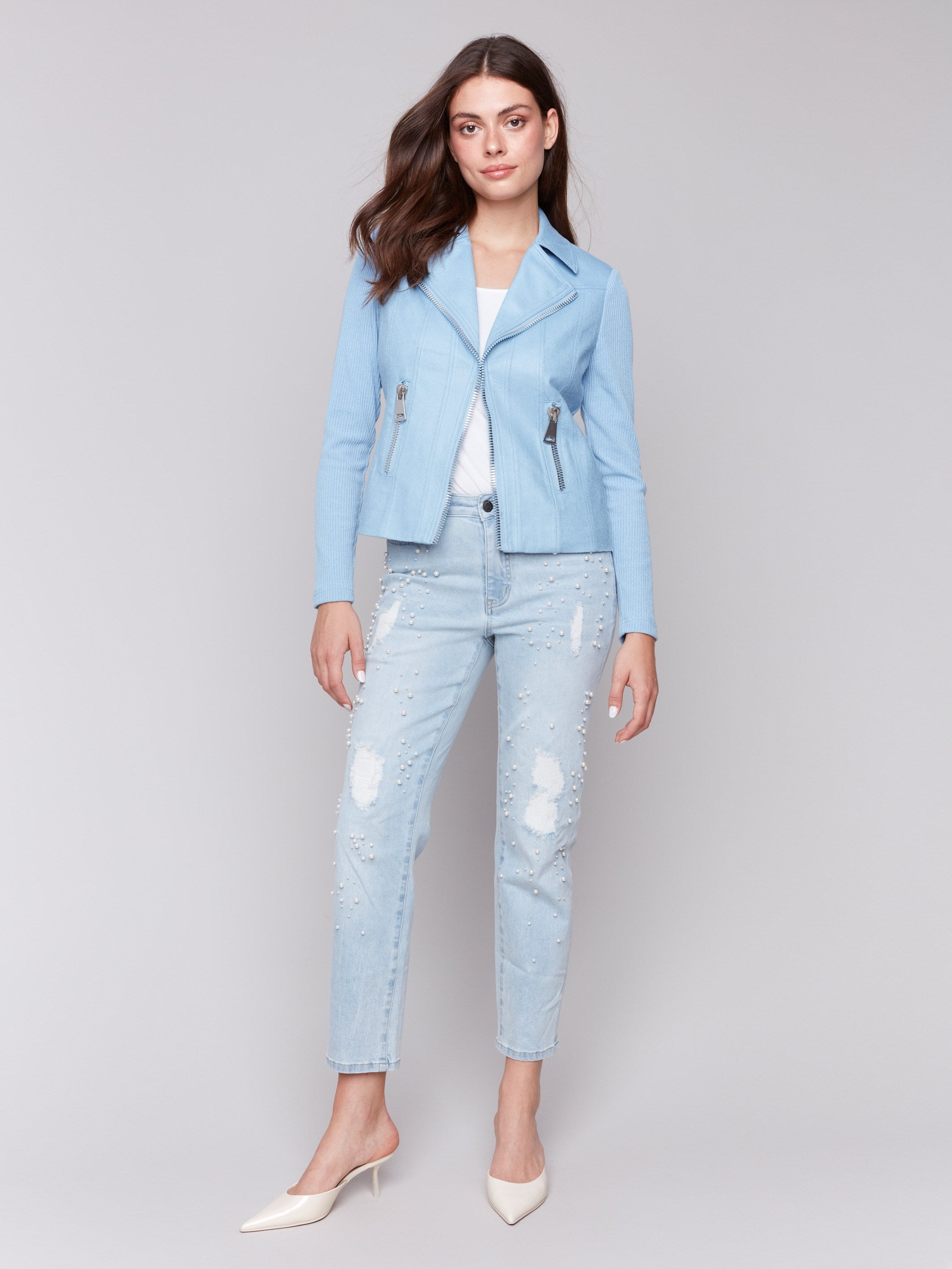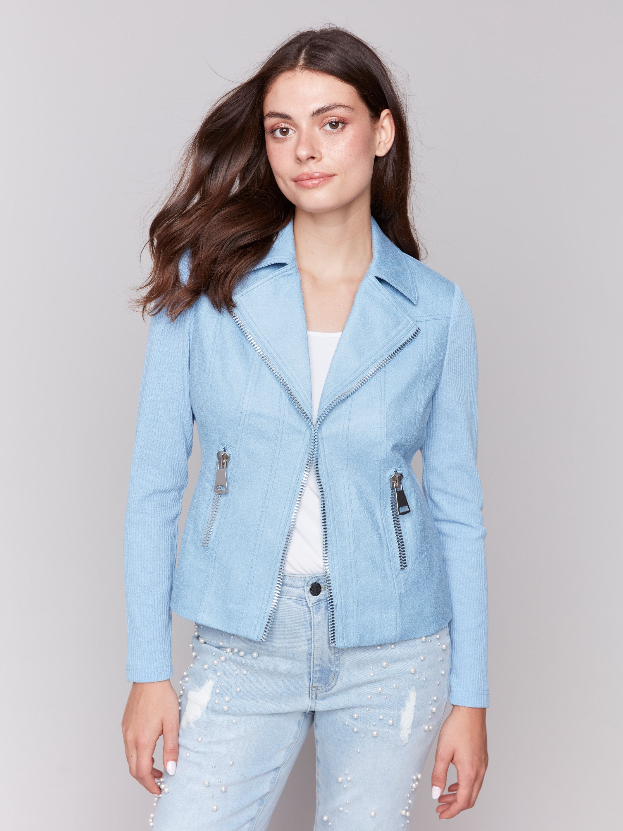 Vintage Faux Leather and Rib Knit Jacket - Bluebell
