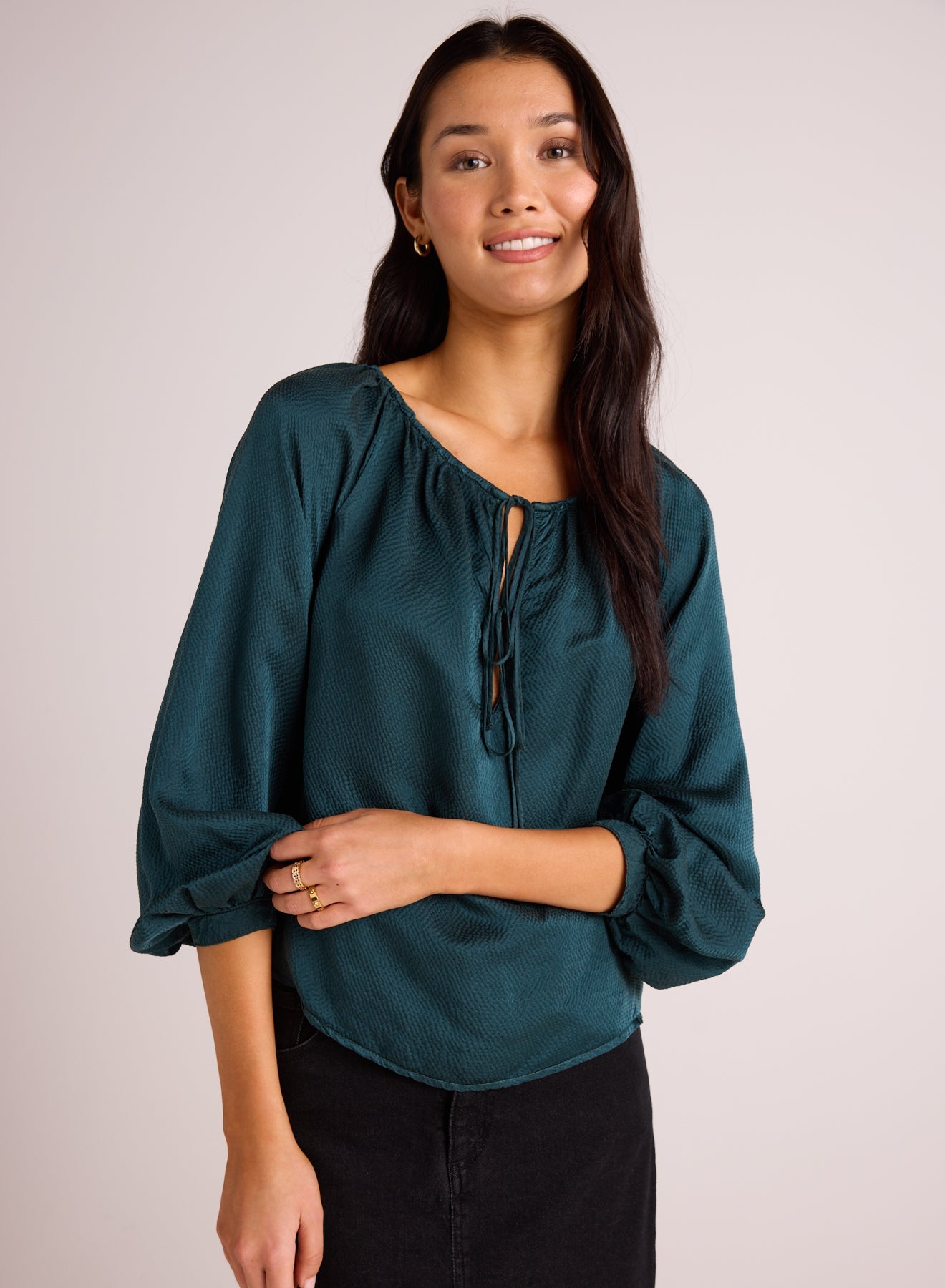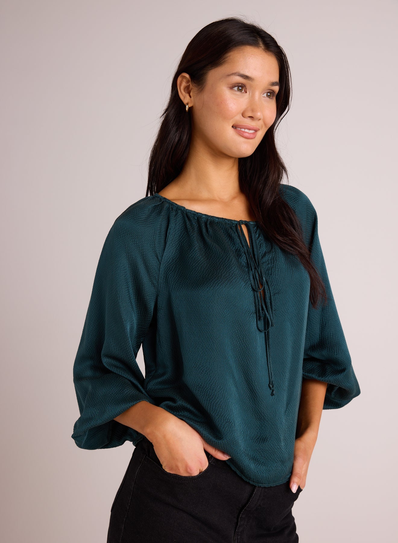 Tie Neck Raglan Top - Marine Teal