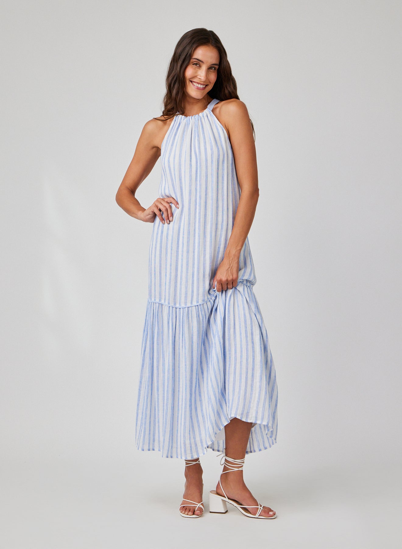 Tiered Contrast Maxi Dress - Blue Sky Stripe