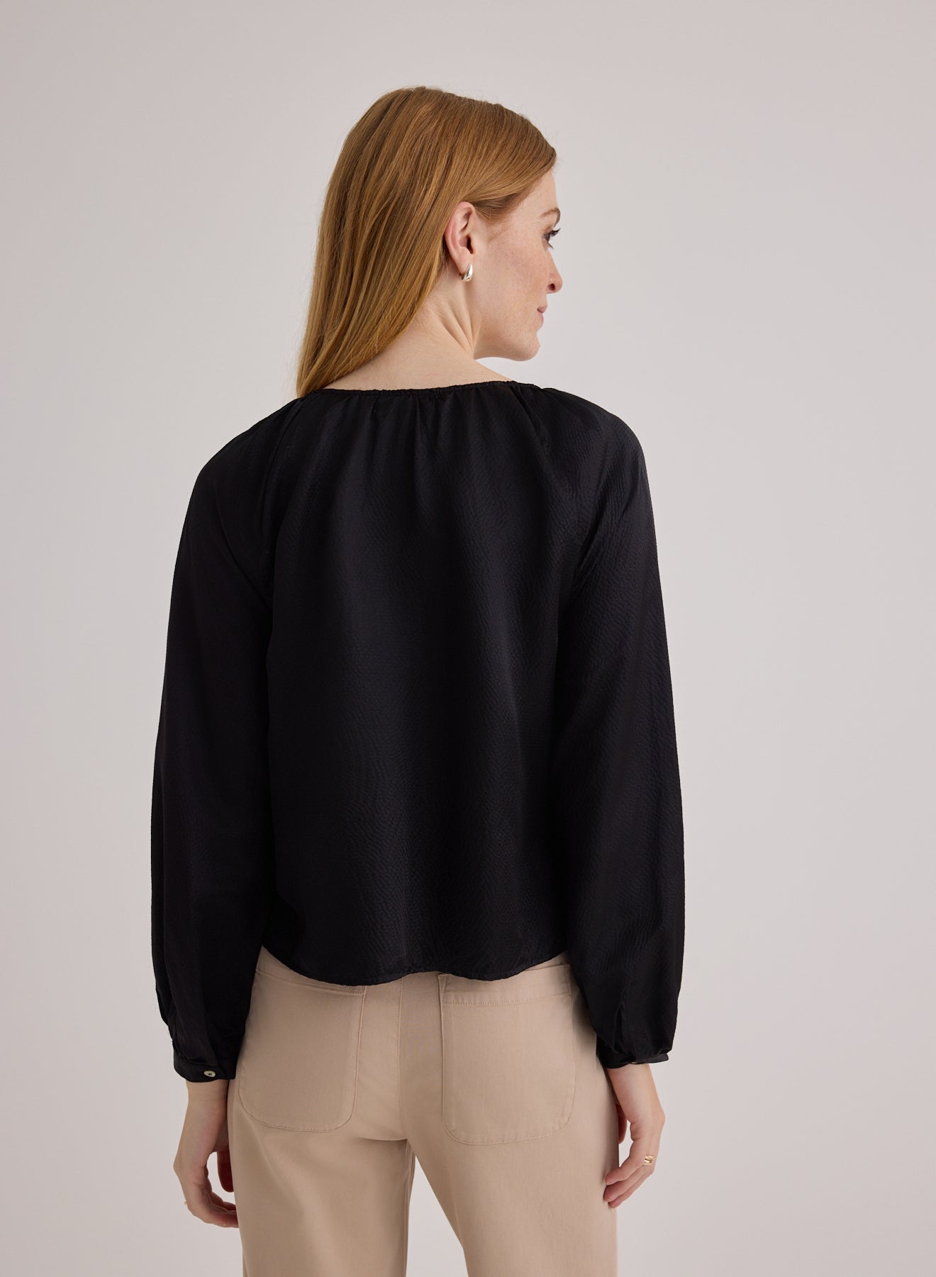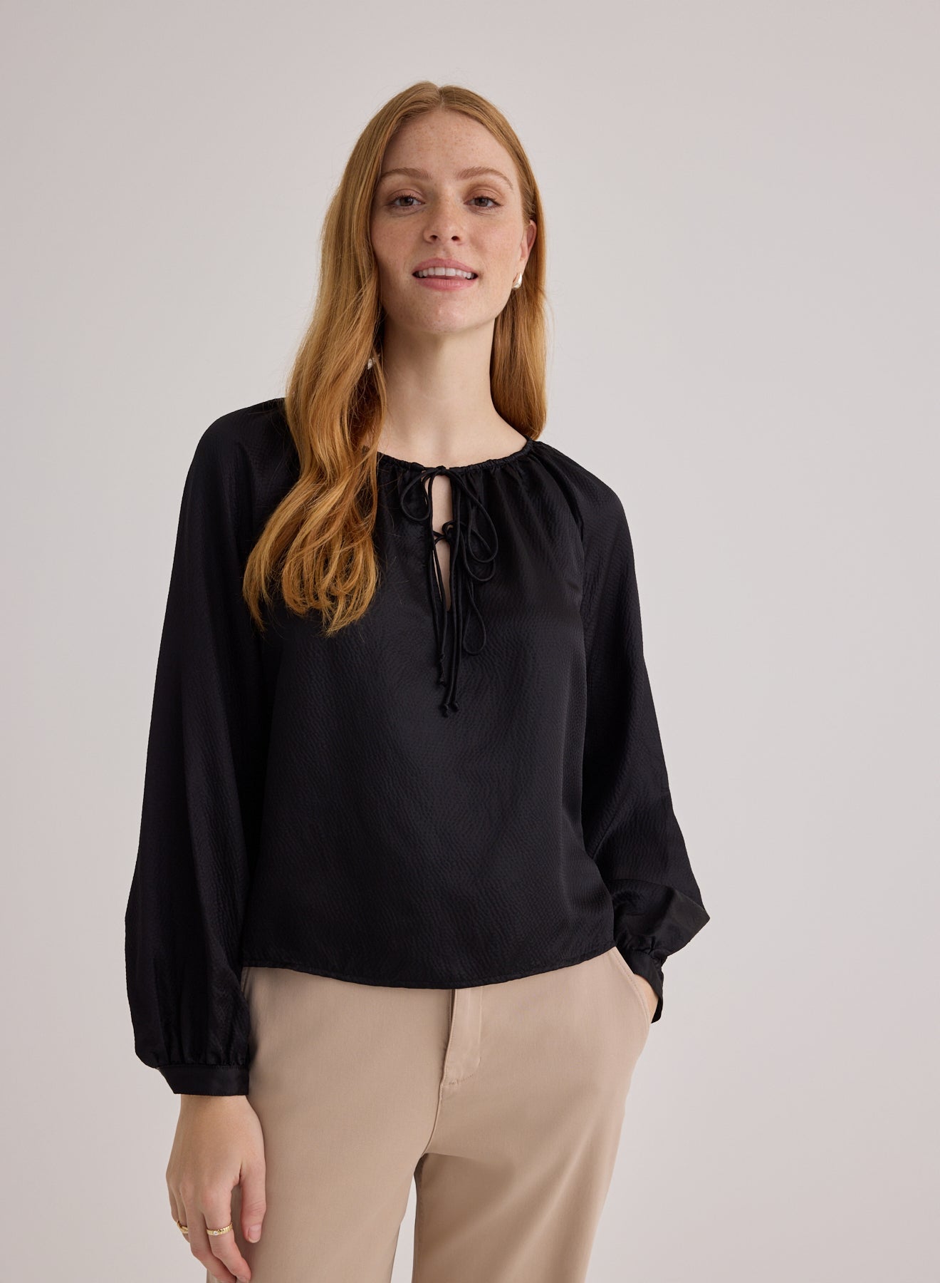 Tie Neck Raglan Top - Black