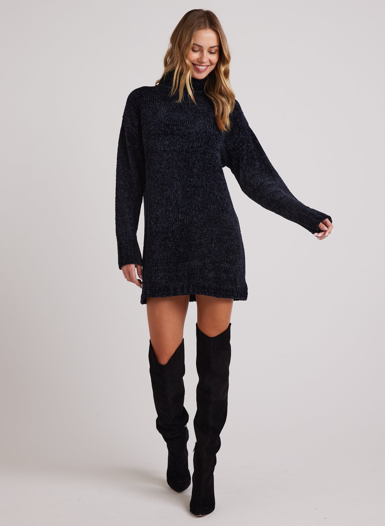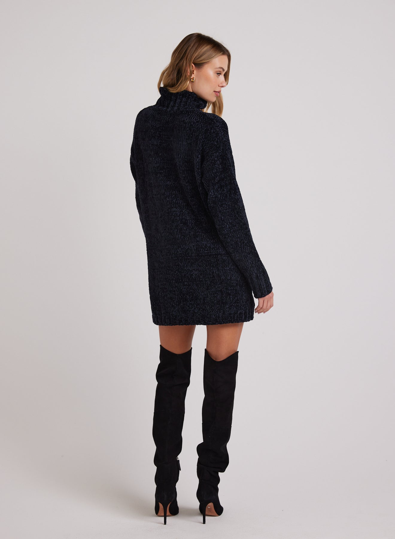 Turtle Neck Chenille Sweater Dress - Galaxy Smoke