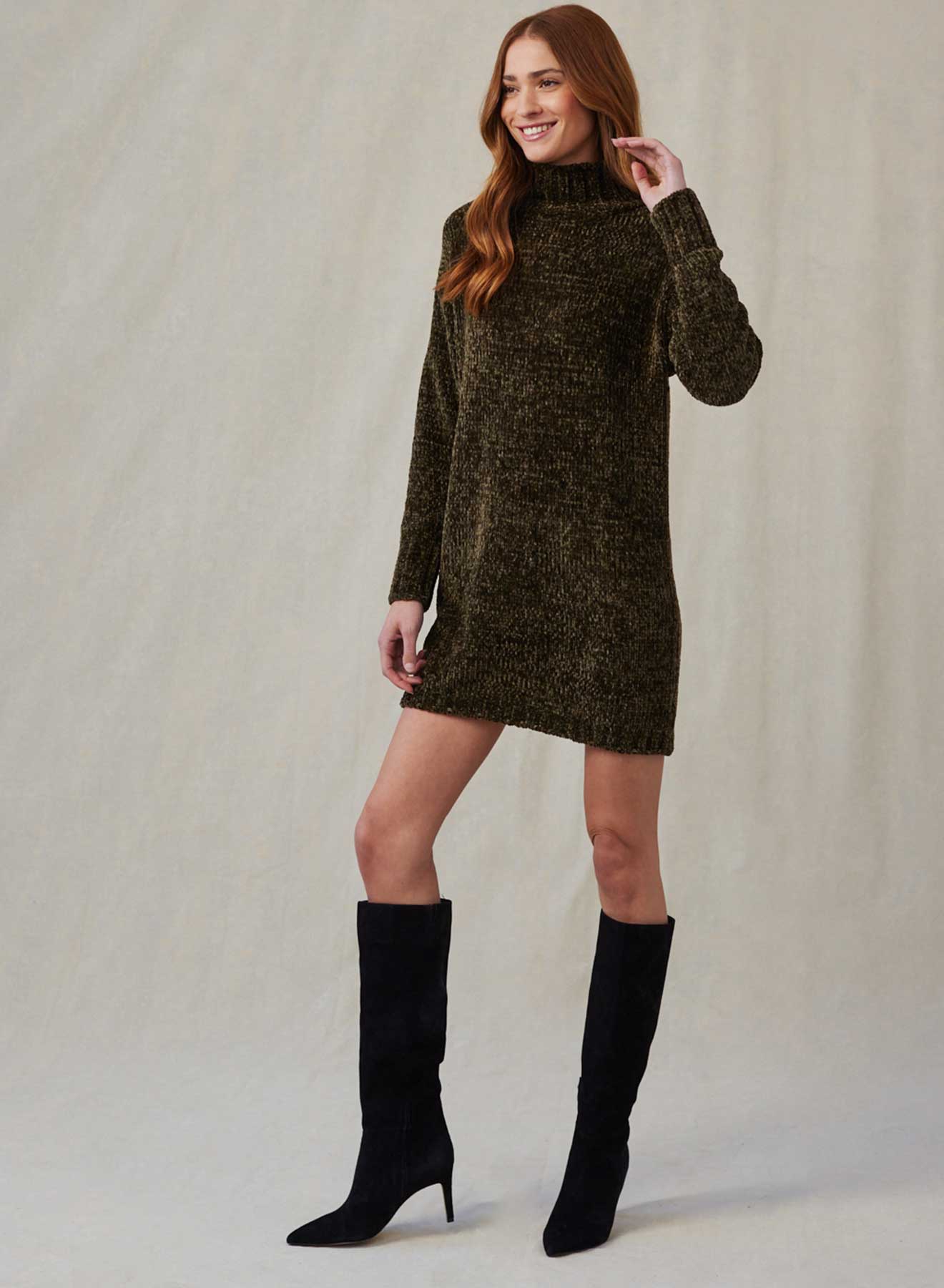 Turtle Neck Chenille Sweater Dress - Italian Herb